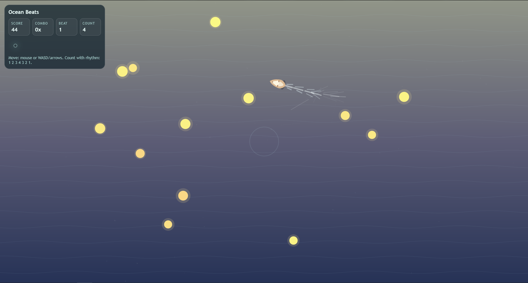 Ocean Beats is a serene yet challenging rhythm action game where you pilot a luminescent boat through a dynamically shifting ocean. Synchronize your movements with an electronic beat and collect cascading lights to build combos and maximize your score.